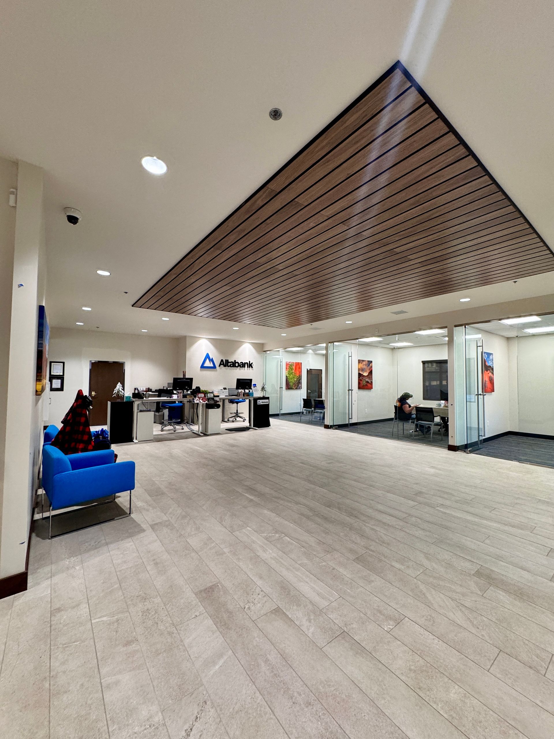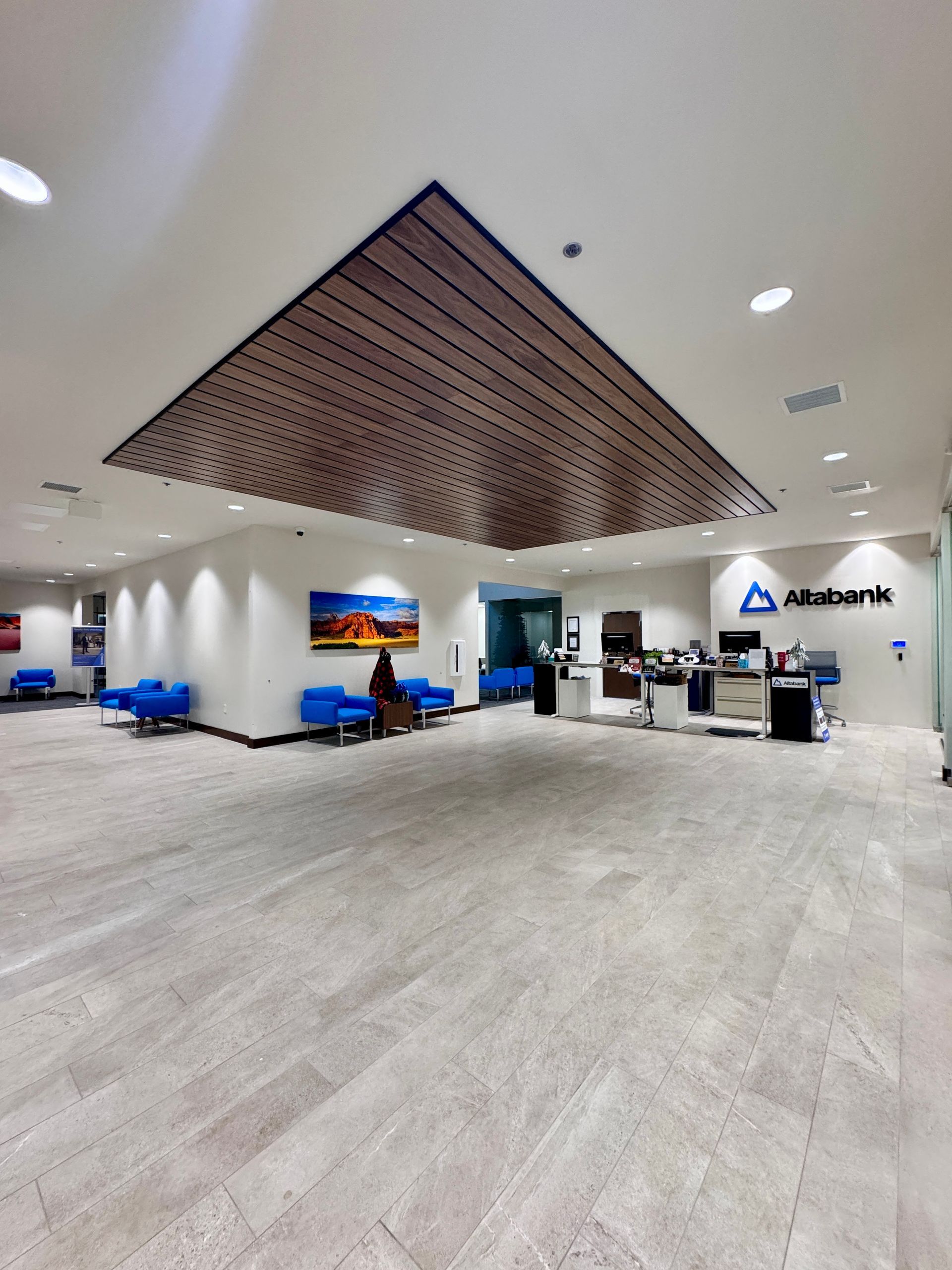 The remodeling phase began with a complete overhaul of the existing building's east interior and the outside tower framing. Our design and construction teams worked to ensure every detail aligned with their branding and operational needs. From updating the lobby with a sleek, modern design to renovating the customer service areas, the goal was to create a space that exudes professionalism and warmth. The overhaul also focused on enhancing functionality. We optimized the floor plans to improve workflow, incorporating open spaces for collaboration as well as private offices for staff. The new layout also features advanced technology infrastructure to support Altabank's cutting-edge banking services.